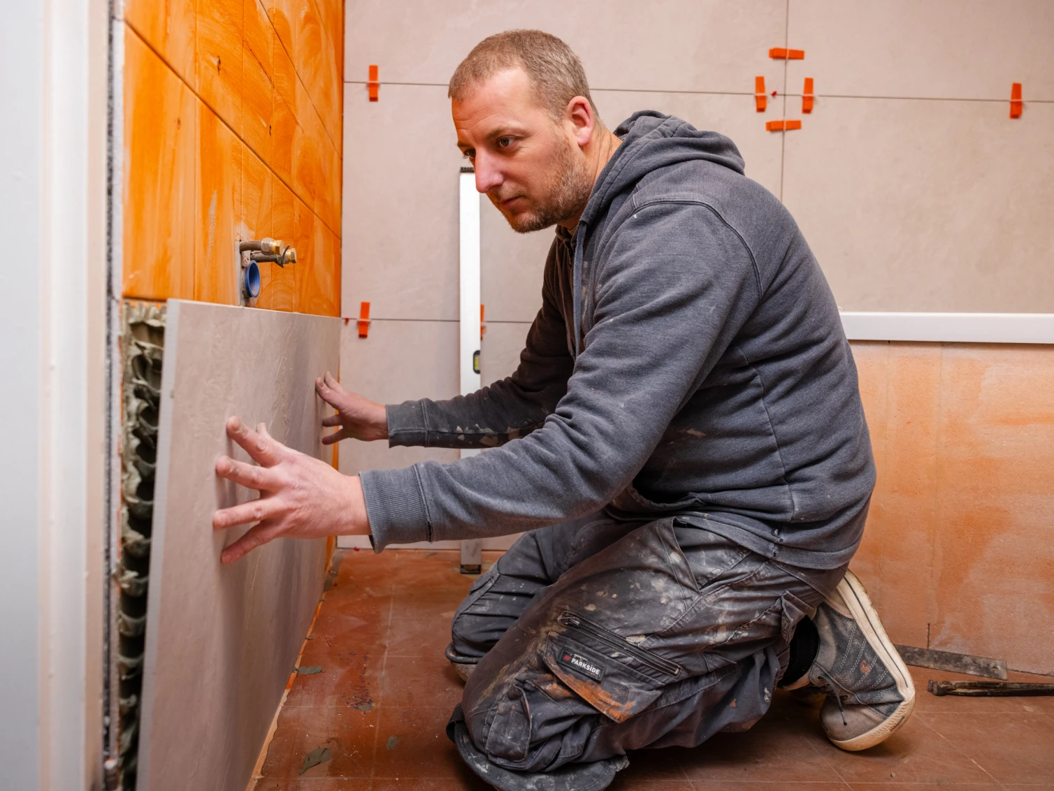 Tegelzetten is een ambacht. En dat merk je. Onze vakmensen werken haaks, strak en met kleine voegen. Of dat nu met lijm is of in de specie. Dankzij jaren ervaring kunnen we snel en precies werken, zonder concessies te doen aan de afwerking. Dat is vooral bij een badkamer prettig: je wilt ’m tenslotte zo snel mogelijk weer gebruiken. De kwaliteit zie je, maar ervaar je vooral. Elke dag opnieuw.